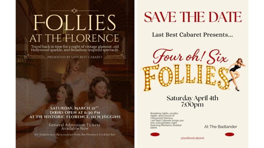 - Saturday, March 21, 2026: Follies at the Florence, an event that features Missoula’s top performers in a night of spectacle, song, and seduction. With live music by Daijha Vu, Follies at the Florence is a celebration of vintage glam, theatrical storytelling, and unforgettable live entertainment. Doors open at 6:30 p.m. General Admission tickets start at $60 for standing room, and $75 for a seated experience. Tickets include your first cocktail and two exciting cabaret acts. Purchase tickets here.